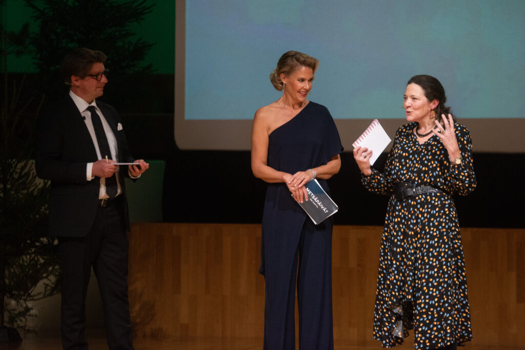 “Ei ole sattumaa, että puhumme elämän puusta”, hän totesi viitaten siihen, kuinka puupohjaiset tuotteet voivat korvata muoveja ja fossiilipohjaisia materiaaleja.