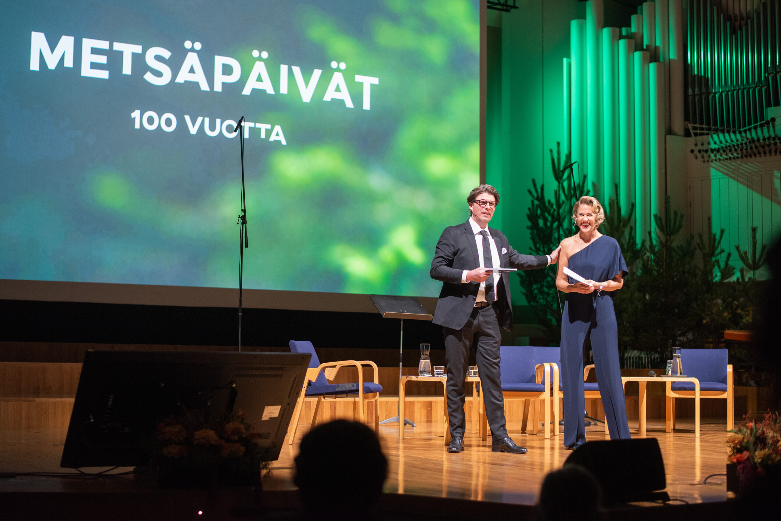 Valtakunnalliset Metsäpäivät 22.–23.10.2025 jäävät historiaan upeana ja juhlavana 100-vuotistapahtumana. Finlandia-talo täyttyi mielenkiintoisista puheenvuoroista ja keskusteluista, palkinnoista ja huomionosoituksista, elämyksellisistä musiikkiesityksistä, historian havinasta ja katsauksista tulevaisuuteen.